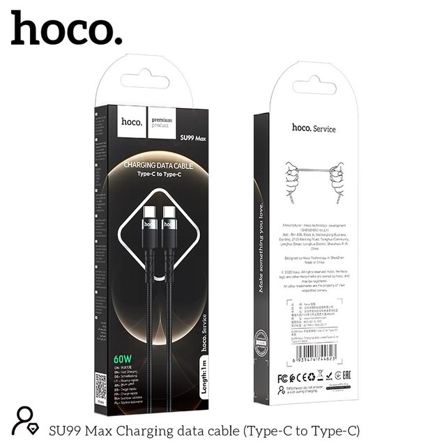 CÁP SẠC NHANH HOCO SU99 MAX TYPE C RA TYPE C DÒNG 3A / 60W - CHÍNH HÃNG