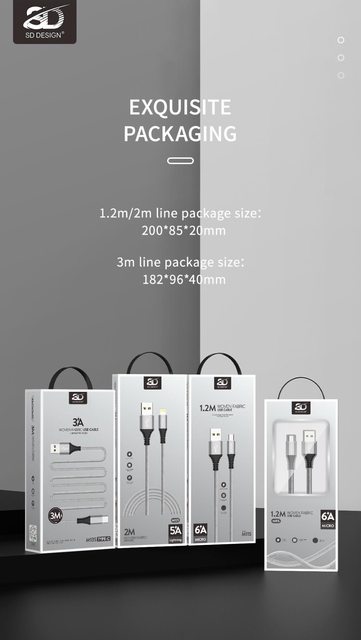 CÁP SẠC NHANH SD DESIGN M11S DÒNG 6A ĐẦU MICRO DÀI 1.2M - CHÍNH HÃNG